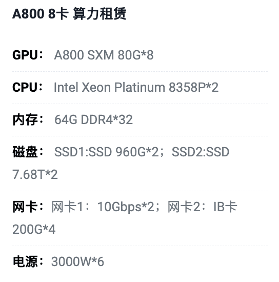 重庆A800八卡算力租用价格